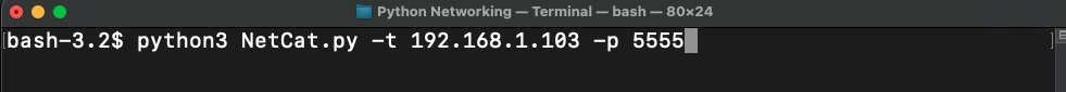 python3 NetCat.py -t 192.168.1.133 -p 5555 -l -e="cat /etc/passwd"
