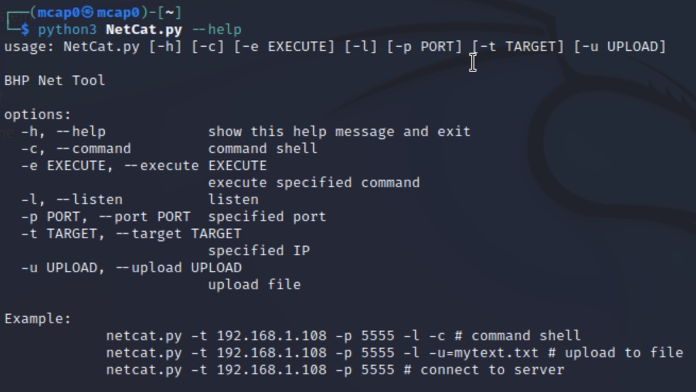 description='BHP Net Tool', formatter_class=argparse.RawDescriptionHelpFormatter,