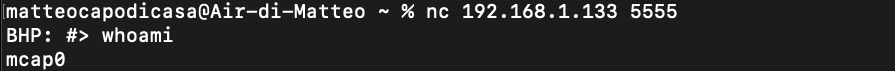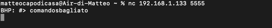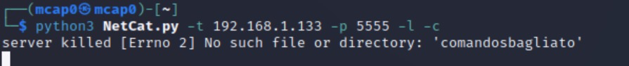 La funzione execute va scritta prima della classe NetCat, serve a far eseguire con interprete locale i comandi che vengono inviati.